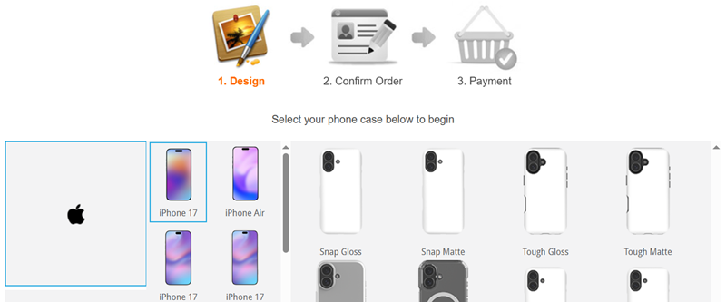 Below is a step by step guide on how you can design your own custom phone case for iPhone 17. It is very simple.